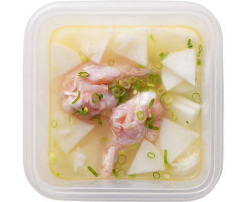 コンテナにごはん、Aを加え、ごはんをほぐすように一度混ぜ合わせる。1の鶏手羽元、大根、小ねぎも加えてかるく混ぜる。