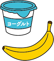 - 空腹で参加せず、おかゆ、バナナ、ヨーグルトなど消化がよい軽食をとっておきましょう。 ※ヨーグルトの脂肪が気になるときは、無脂肪のものや豆乳ヨーグルトを選びましょう。