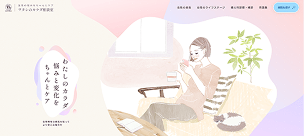 「ワタシのカラダ相談室」は、女性の体や病気について、わかりやすく学べるWEBサイトです。月経困難症や子宮内膜症などの病気の基礎知識から治療法、婦人科受診のポイントまで、丁寧に解説しています。